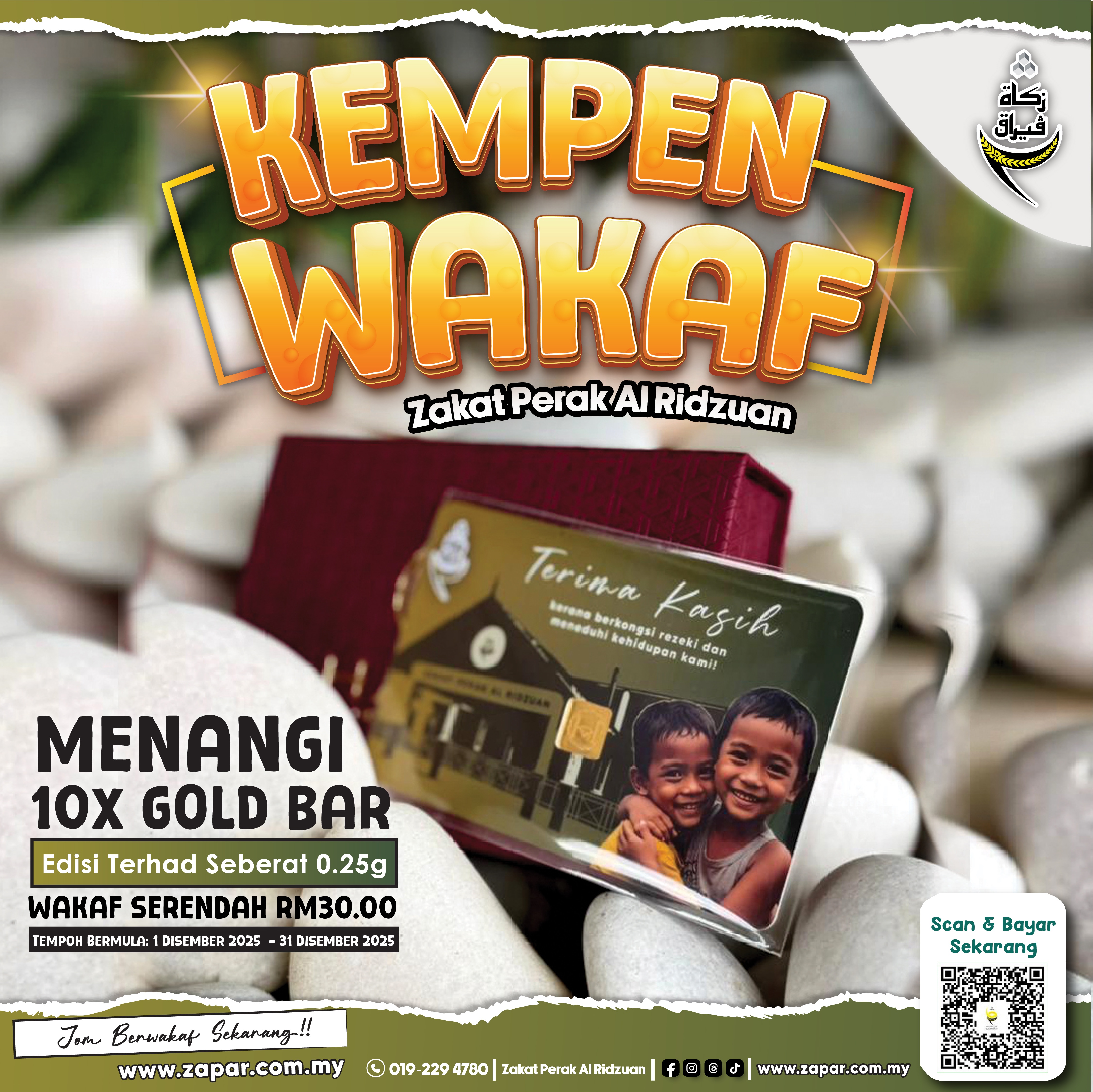 Jadikan rezeki lebih bermakna, bukan hanya untuk diri sendiri, tetapi juga untuk ummah dengan pelbagai projek di bawah program Wakaf Perak Al Ridzuan.