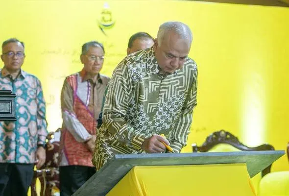 Sultan Nazrin Shah berkenan menandatangani plak pada Majlis Pelancaran Zakat Perak Al Ridzuan (ZAPAR) anjuran MAIPk di ZAPAR, Ipoh, hari ini.