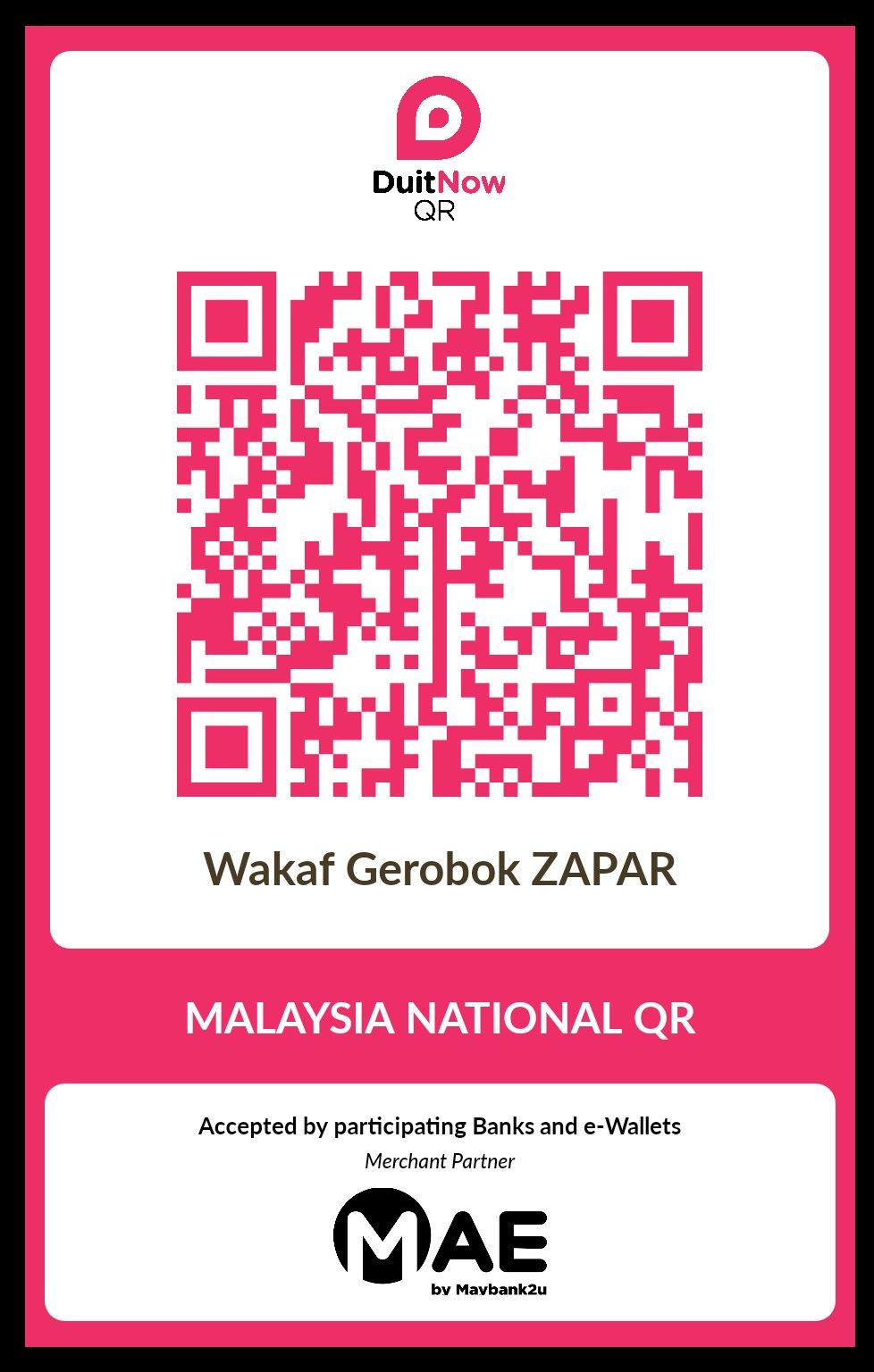 JOM BERWAKAF DENGAN SCAN QR TABUNG WAKAF TUNAI AM ZAPAR