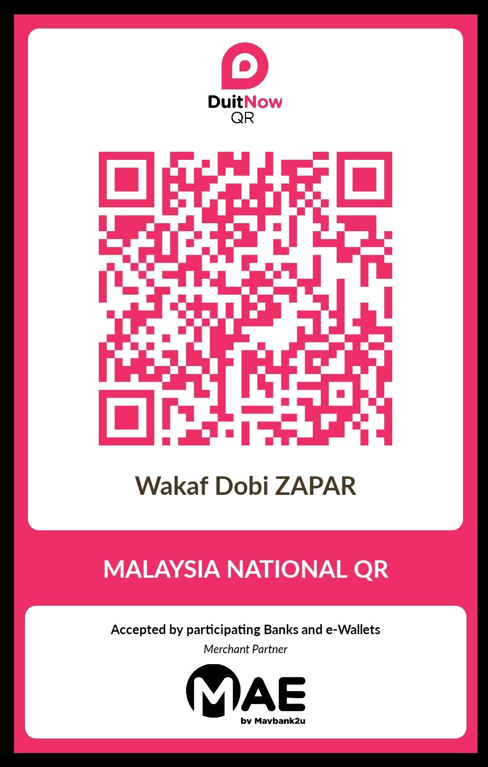JOM BERWAKAF DENGAN SCAN QR TABUNG WAKAF DOBI ZAPAR
