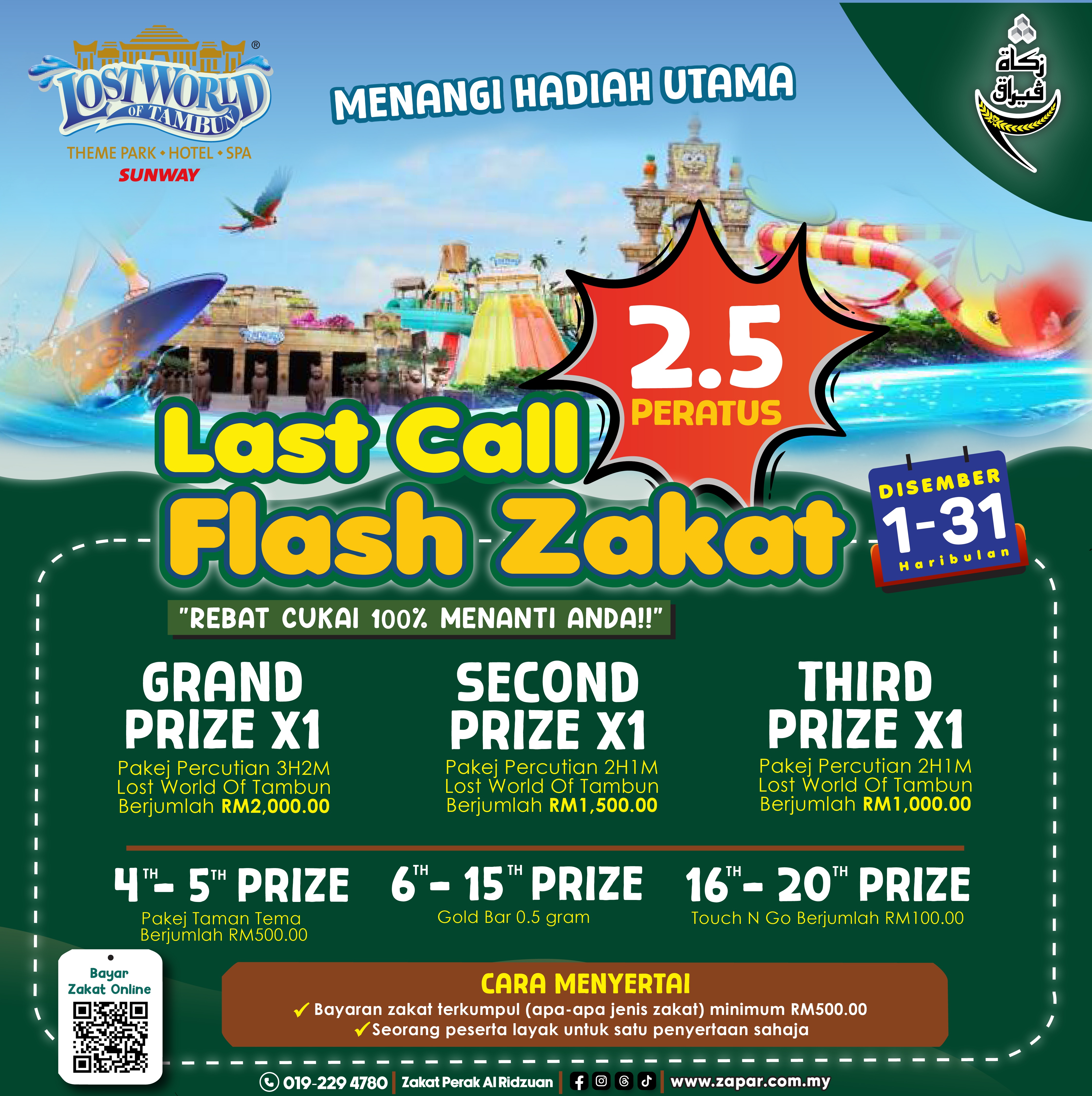 - KLIK DISINI untuk melihat terma dan syarat penuh Kempen Last Call, Flash Zakat #LastCallFlashZakat!